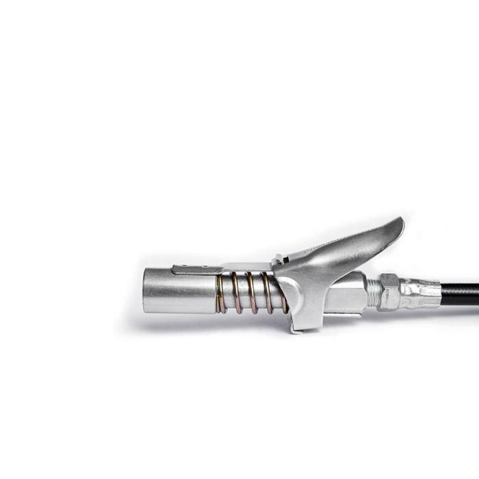 Ermöglicht sicheres und einfaches Abschmieren bei Wartungsarbeiten, auch unter Hochlastbetrieb kein Fettverlust - einfach ankuppeln, loslassen und arbeiten ohne festzuhalten!