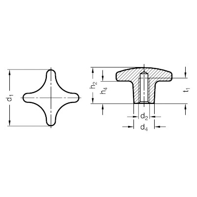 Kruisknop DIN 6335, 50 mm. M10