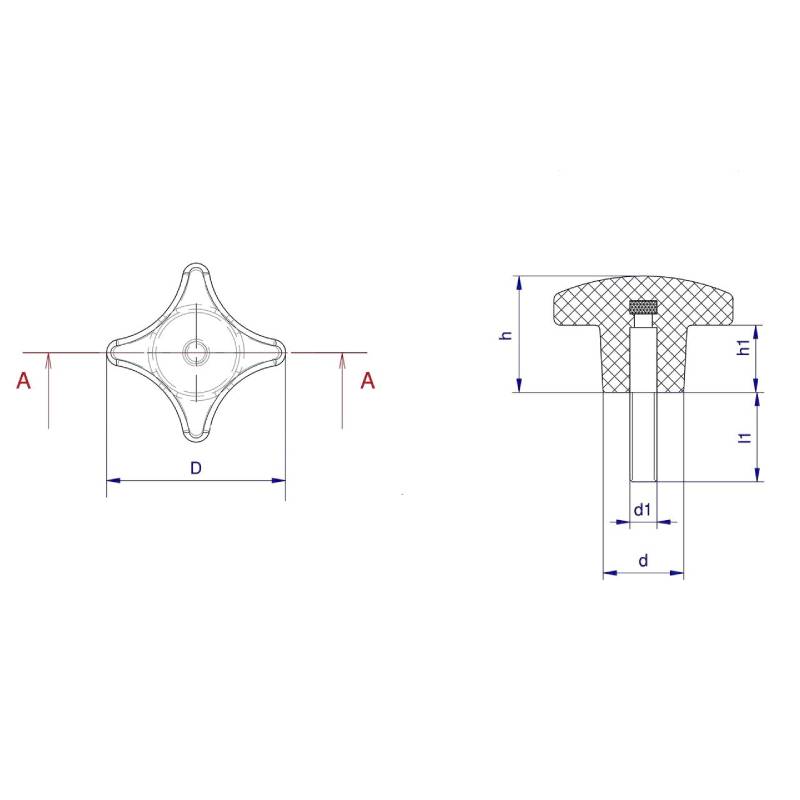Kruisknop DIN 6335 50mm M10x30