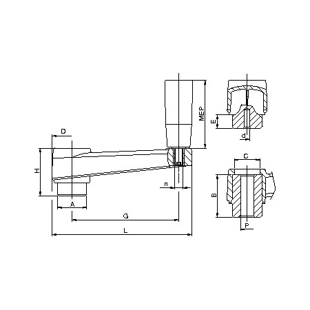 | Artikel | G [mm] | d [mm] | P [mm] | A [mm] | D [mm] | E [mm] | H [mm] | n | B [mm] | C [mm] | MEP [mm] | L [mm] | CAD | VE | Voorraad | Prijs | Bestel | ||