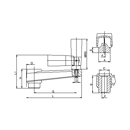 | Artikel | G [mm] | d [mm] | P [mm] | L1 [mm] | A [mm] | D [mm] | E [mm] | H [mm] | n | L [mm] | B [mm] | C [mm] | MRS [mm] | CAD | VE | Voorraad | Prijs | Bestel | ||