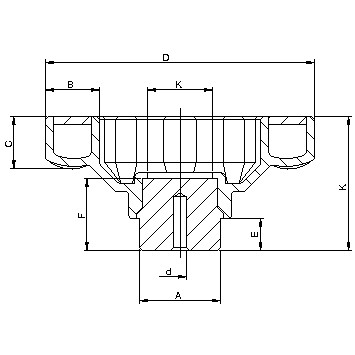 | Artikel | D [mm] | d [mm] | H [mm] | C [mm] | B [mm] | A [mm] | E [mm] | F [mm] | K [mm] | CAD | VE | Voorraad | Prijs | Bestel | ||