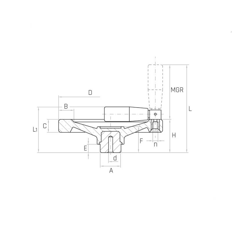 | Artikel | D [mm] | d [mm] | H [mm] | L [mm] | L1 [mm] | C [mm] | B [mm] | A [mm] | E [mm] | F [mm] | MGR [mm] | n | CAD | VE | Voorraad | Prijs | Bestel | ||