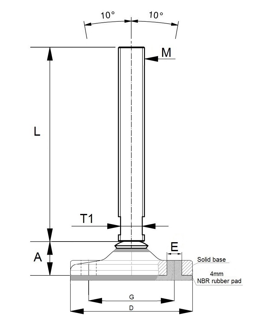 Stelvoet PA blauw ø125 M10x070, fixatie