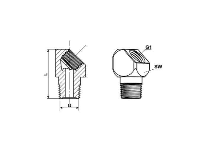 Verloop 45 graden, 1/8NPT bi-bu staal